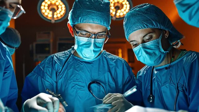 Team of surgeons performing operation in operation theater