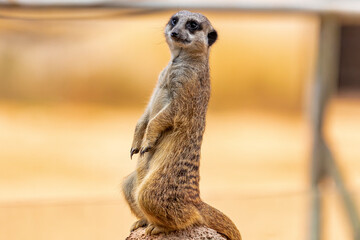 Close up of a meerkat (suricata suricatta) sitting on the ground