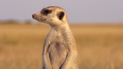 The meerkat (Suricata suricatta), portrait of suricate in lookout position.