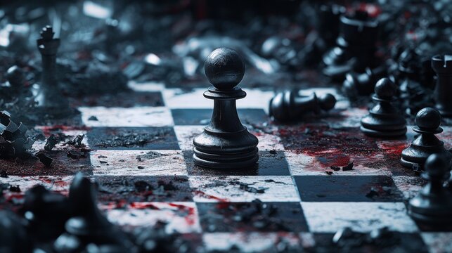 War aftermath with destroyed buildings, rubble, and smoke rising into sky. War aftermath depicting silhouettes walking through debris, a stark reminder of devastation.