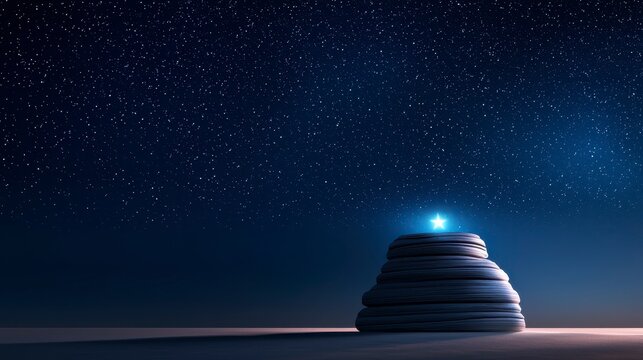 A lone stars glow symbolizing a minimalist tribute to Memorial Day freedom close up patriotic honor ethereal double exposure with a night sky backdrop. Night sky remembrance.