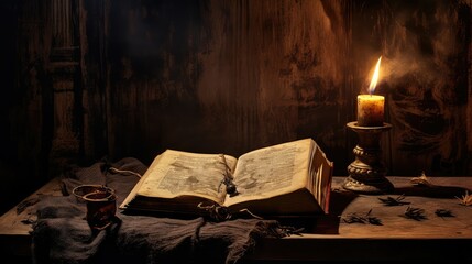 Spooky Halloween book with candle on dark background, spooky, Halloween, book, death, mystery, candle, dark, background