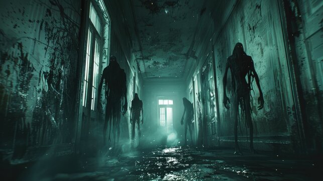 Mysterious silhouette walking down a dimly lit corridor, perfect for suspenseful storytelling