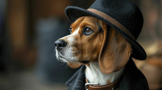 A beagle donning a detective hat exudes curiosity and intelligence, perfect for captivating mystery and detective product showcases.