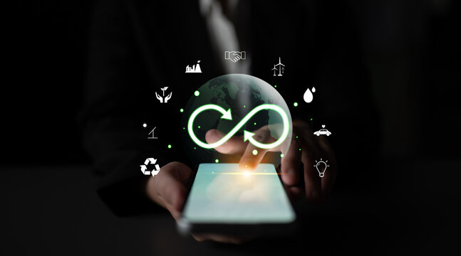 The concept of a circular economy for sustainable production and consumption. A global model of recycling, reusing, and renewable energy for the future. Motif
