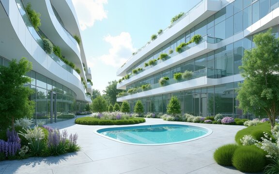 Healthcare facility with sustainable water and waste management systems, green design, eco-friendly healthcare. High quality