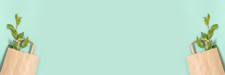 Female hands puts fruits and vegetables in cotton produce bag at food market. Reusable eco bag for shopping. Zero waste concept.