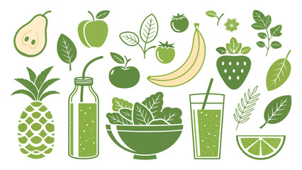 Vibrant healthy smoothie silhouette with fresh fruits and greens, perfect for wellness and nutrition themes