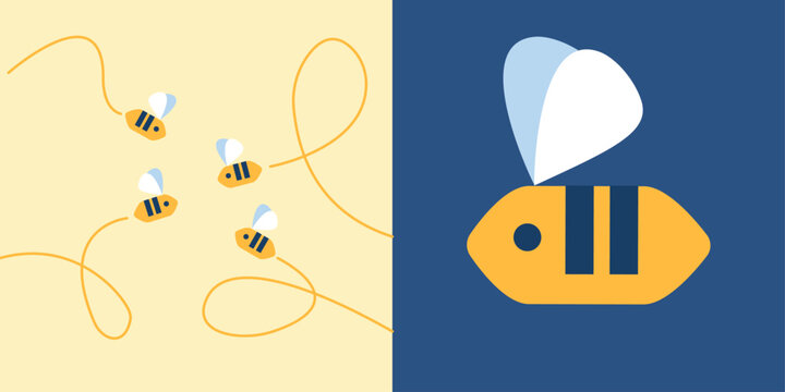Illustration of bees swarming together. Bee icon. Logo. Modern. Minimal.