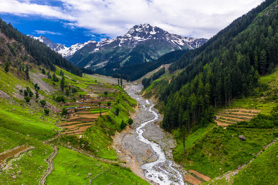 Swat river passing through village of Bahrain in Swat Valley Pakistan
