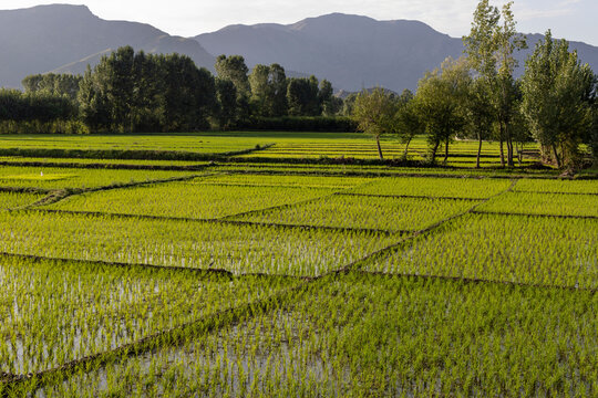 A beautiful scenery and landscape view of rice paddies in Swat Valley , Khyber Pakthunkhwa, Pakistan.