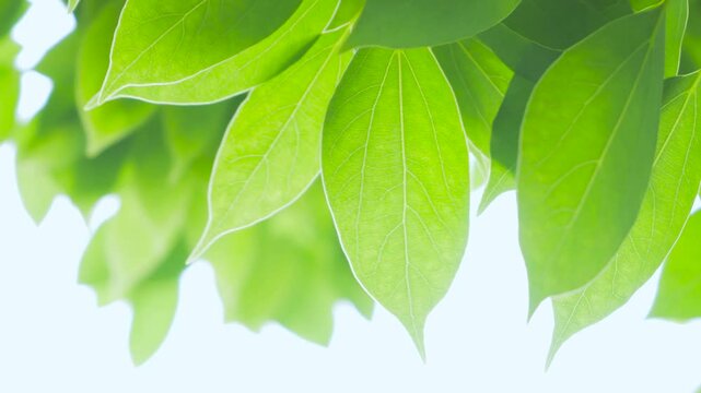 Vibrant green leaves gently swaying in the breeze on a sunny day under a clear sky