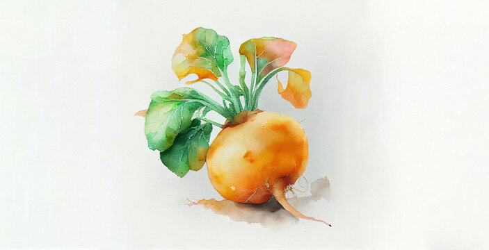 Swede. Watercolor on white paper background. Illustration of vegetables and greens