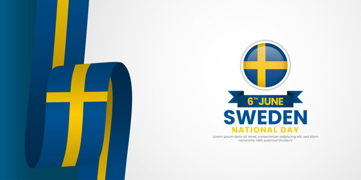 Sweden National Day Vector Illustration on 6 June Celebration with Swedish Flag and Ribbon in Holiday Celebration Flat Cartoon Background