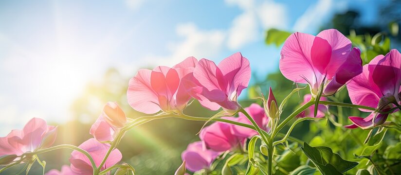 sweet pea flower on a warm summer day. Creative banner. Copyspace image