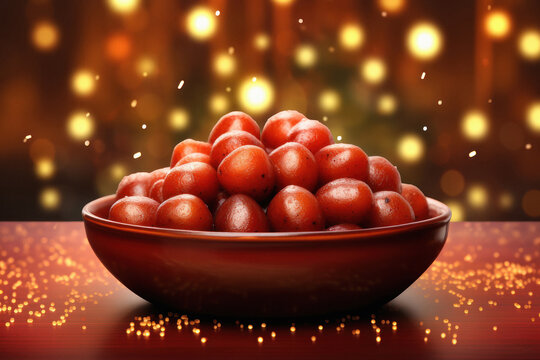 indian sweet food gulab jamun in bowl.
