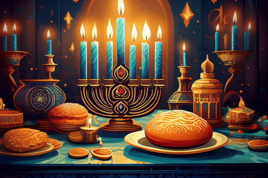 Celebration of Lights With Tasty Treats and Candles Generative AI