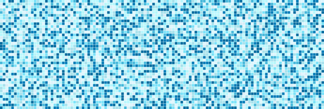 Blue, aqua, and navy seamless vector tile pattern with 8-bit retro game texture. Great for kids, children, kindergarten, school, swimming pool graphics, and disco ball backgrounds.