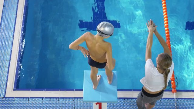 Teen boy at swimming practice.