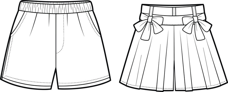 Men's chino suit shorts flat sketch fashion illustration with  front and back view. twill Shorts vector template