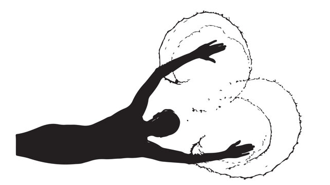 Dynamic swimmers and runners capture athletic motion, celebrating sports achievement and competitive spirit in silhouette style