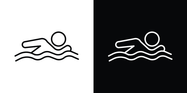 A detailed black and white illustration of a swimmer executing a butterfly stroke. This image captures the strength and precision of competitive swimming, ideal for sports and fitness themes.