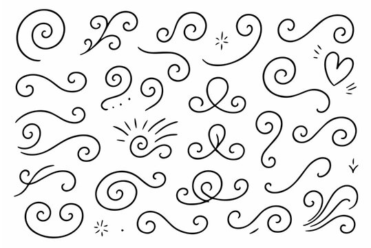 Hand-drawn doodle vector set of swirly lines created in a fun sketchy ink-pen style, isolated on white background