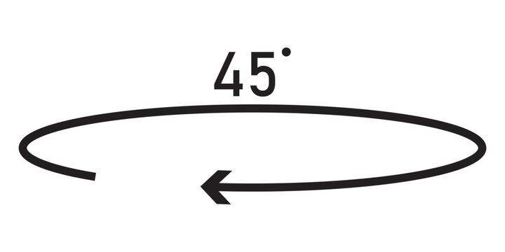 Round and Rotation arrow icon with angle 45, 90, 180, 360 degrees vector illustration. angles of turn swivel icon 45 to 360 degrees icon.