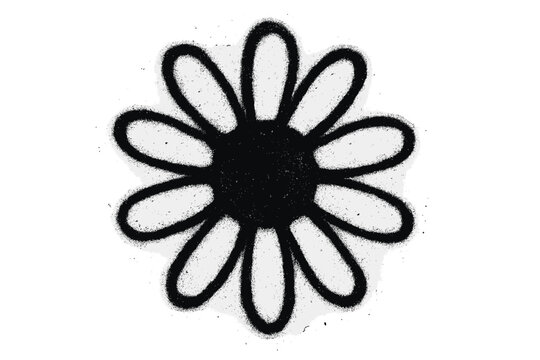Sprayed urban graffiti flower icon isolated, daisy with spray paint texture, stencil street art style, vector cartoon illustration, urban art design with transparent background