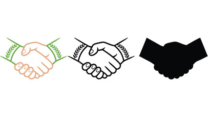 Symbolic handshake illustrations representing agreement, partnership, and unity.