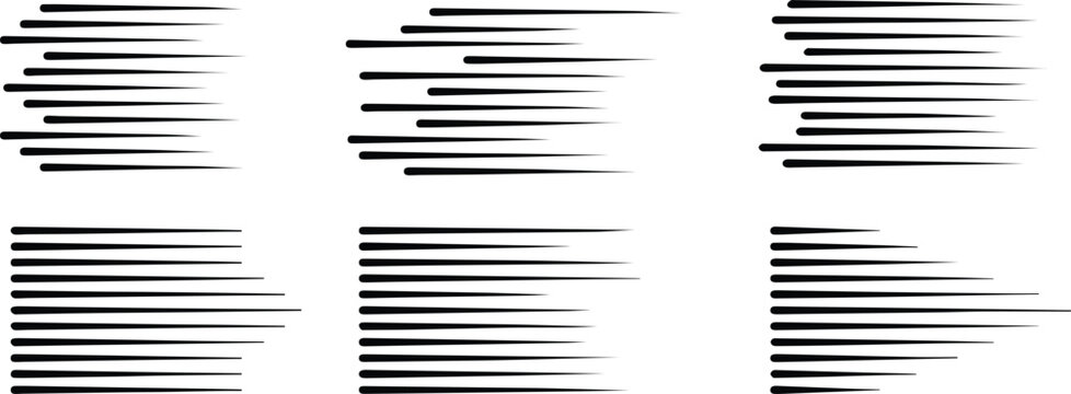 Speed Line Set. Comic motion speed lines. Horizontal speed motion lines. Fast motion effect. Speed and fast action symbol.