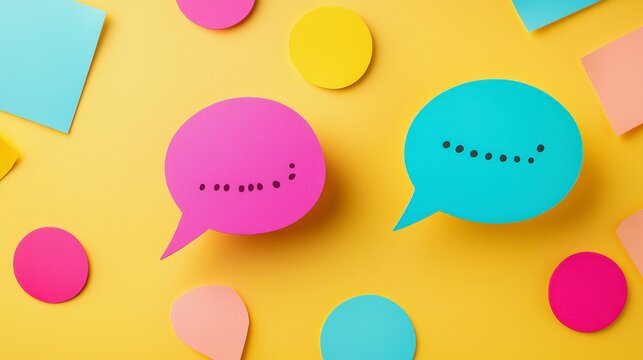 Dynamic neon light speech bubble against a vivid digital space background, symbolizing communication. Panorama with copy space.