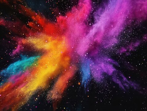 Colorful shopping bag with various items bursting out against a vibrant blue background, symbolizing excitement and joy in shopping.