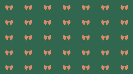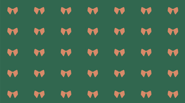 Repeated pattern of peach colored bow ties arranged on a dark green background in a symmetrical grid layout