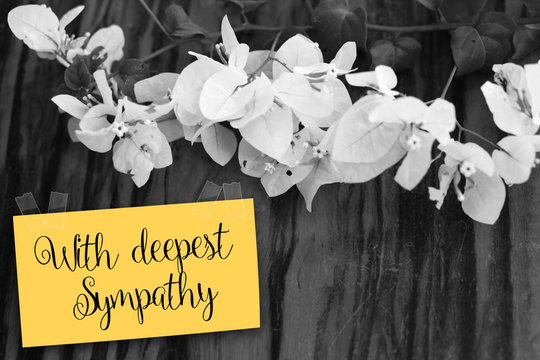 "With deepest sympathy" note on small flower sepia tone