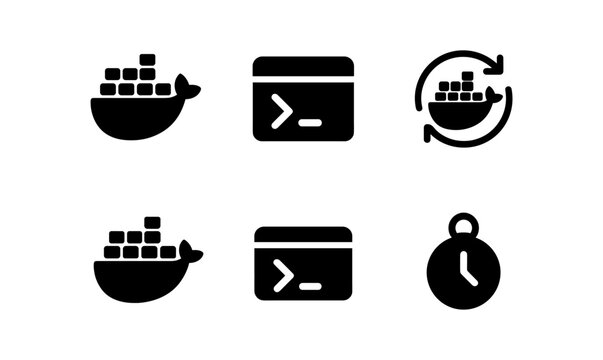Container and devops icons: simplified black silhouettes for technology designs