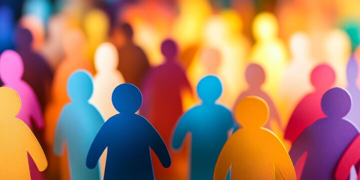 Colorful paper people crowd; diversity, unity; blurred background; social media