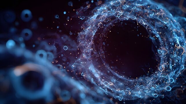 AI and genetic synergy visual with floating abstract shapes and open center