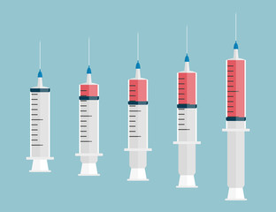Flat style vector illustration of a syringe with a needle and fluid dripping from the needle tip
