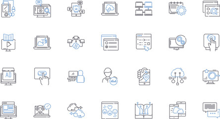 Automated line icons collection. Robotics, Mechanized, Autonomous, Digital, Programmed, Automated, Smart vector and linear illustration. Machine-driven,Scripted,Electronic outline signs set