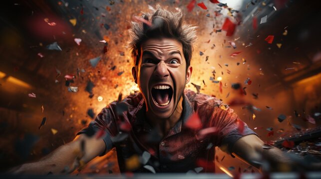 Dynamic table tennis player in action with paddle and ping pong ball on blue background