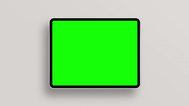 Portrait of excited cheerful joyful beautiful charming clever intelligent with toothy beaming smile marketer using digital tablet for her presentation isolated on gray background copy-space