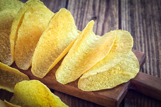 Tacos - Mexican yellow corn tortilla , empty shell on wooden cutting board