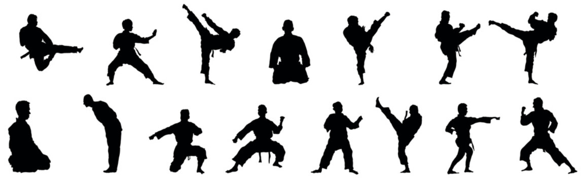Silhouette of martial art. Kungfu, karate, taekwondo
