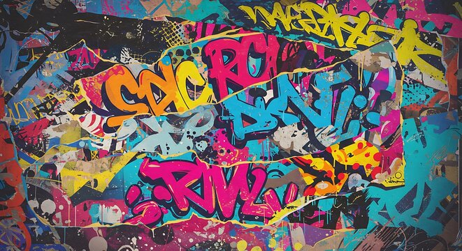 Abstract Graffiti Wall with Colorful Layers and Torn Paper Style