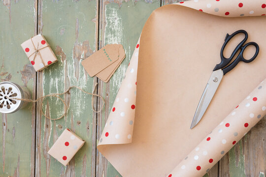 christmas wrap with string and tags