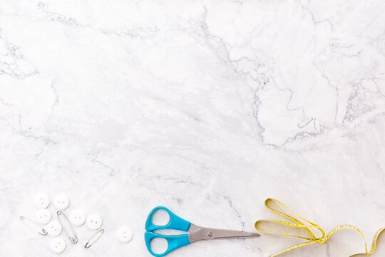 Banner of Items for sewing clothes. Sewing buttons, spools of thread and cloth