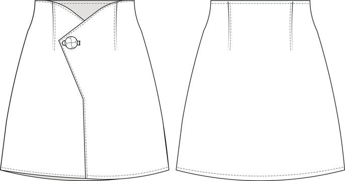 tailored darted buttoned short mini fit a line pencil vut skirt template technical drawing flat sketch cad mockup fashion woman design style model