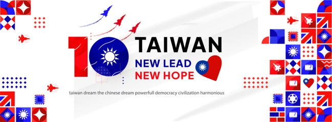 Taiwan national day banner background 10th october design element with waving ribbon flag