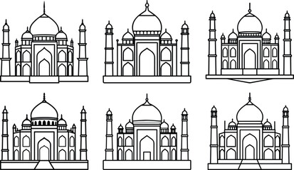 Collection of taj mahal outline vector illustration line art